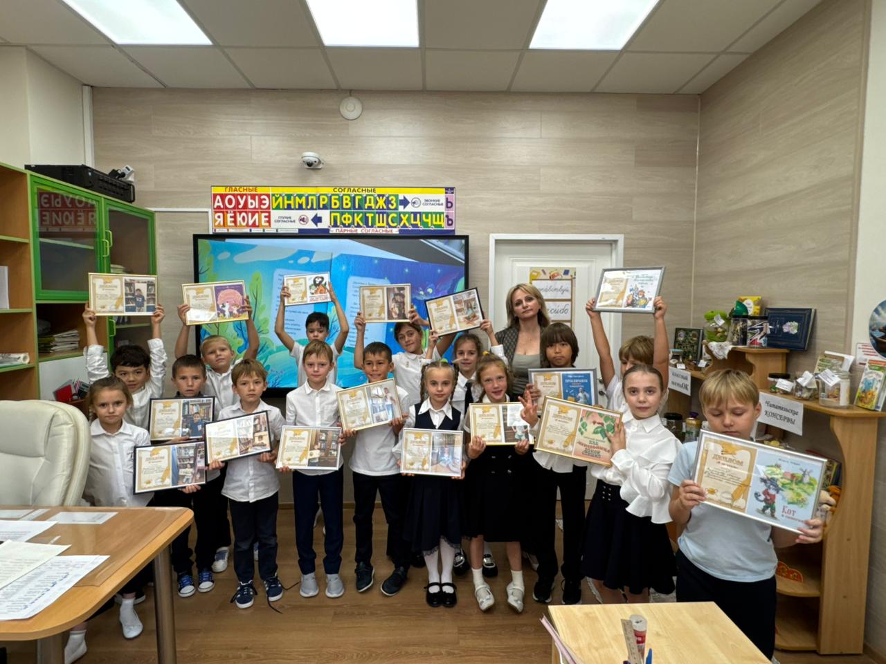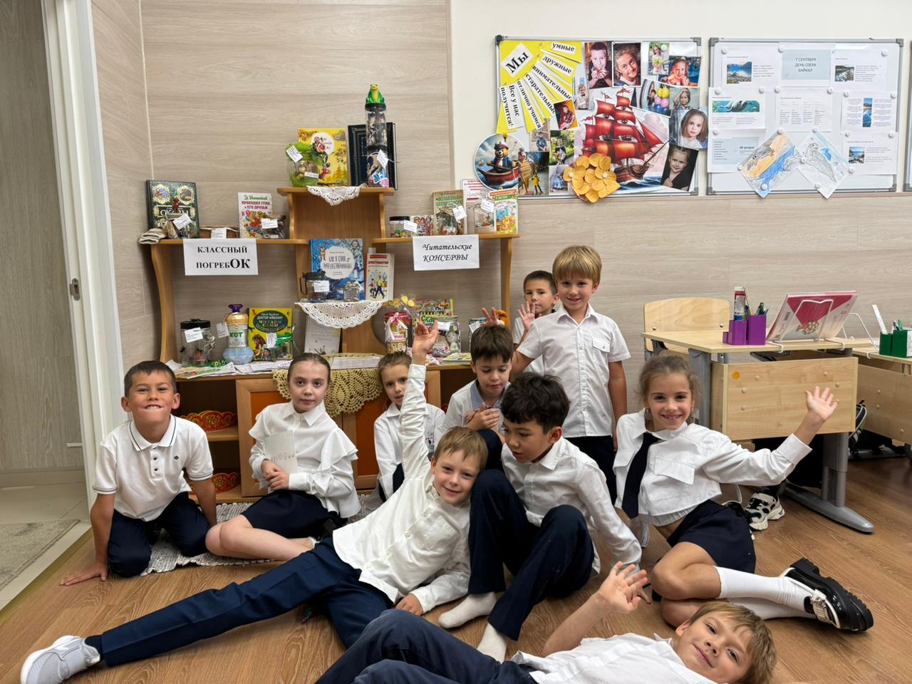А на уроке литературного чтения дети собирали урожай прочитанных книг за лето и складывали всё в Классный погребОК!